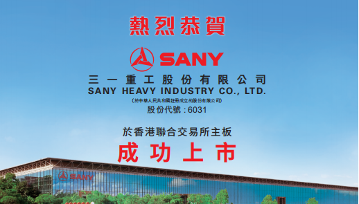 Congratulations to our strategic partner Sany Heavy Industry Co., Ltd. on Successful Listing